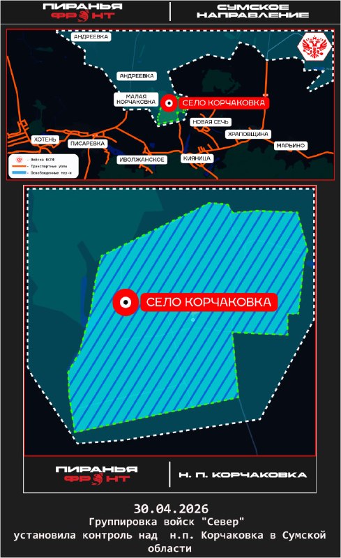 В этой рубрике мы освещаем для вас события всей линии фронта: ‼ Российские войска установили контроль над населенным пунктом Корчаковка в Сумской области и освободили населенный пункт Новоалександровка в Донецкой Народной Республике.